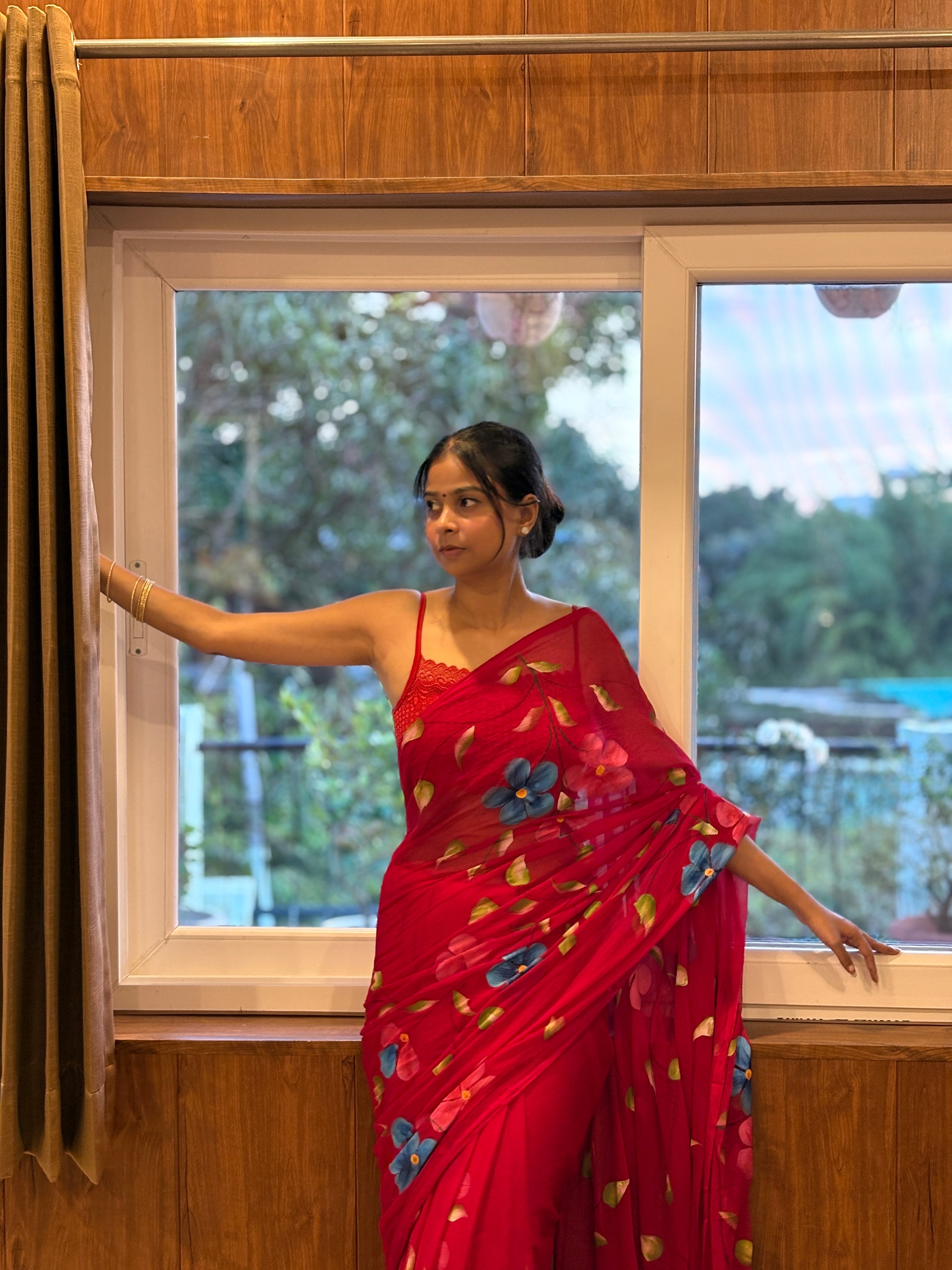 Laal Ishq — Red Hand-Painted Chiffon Saree